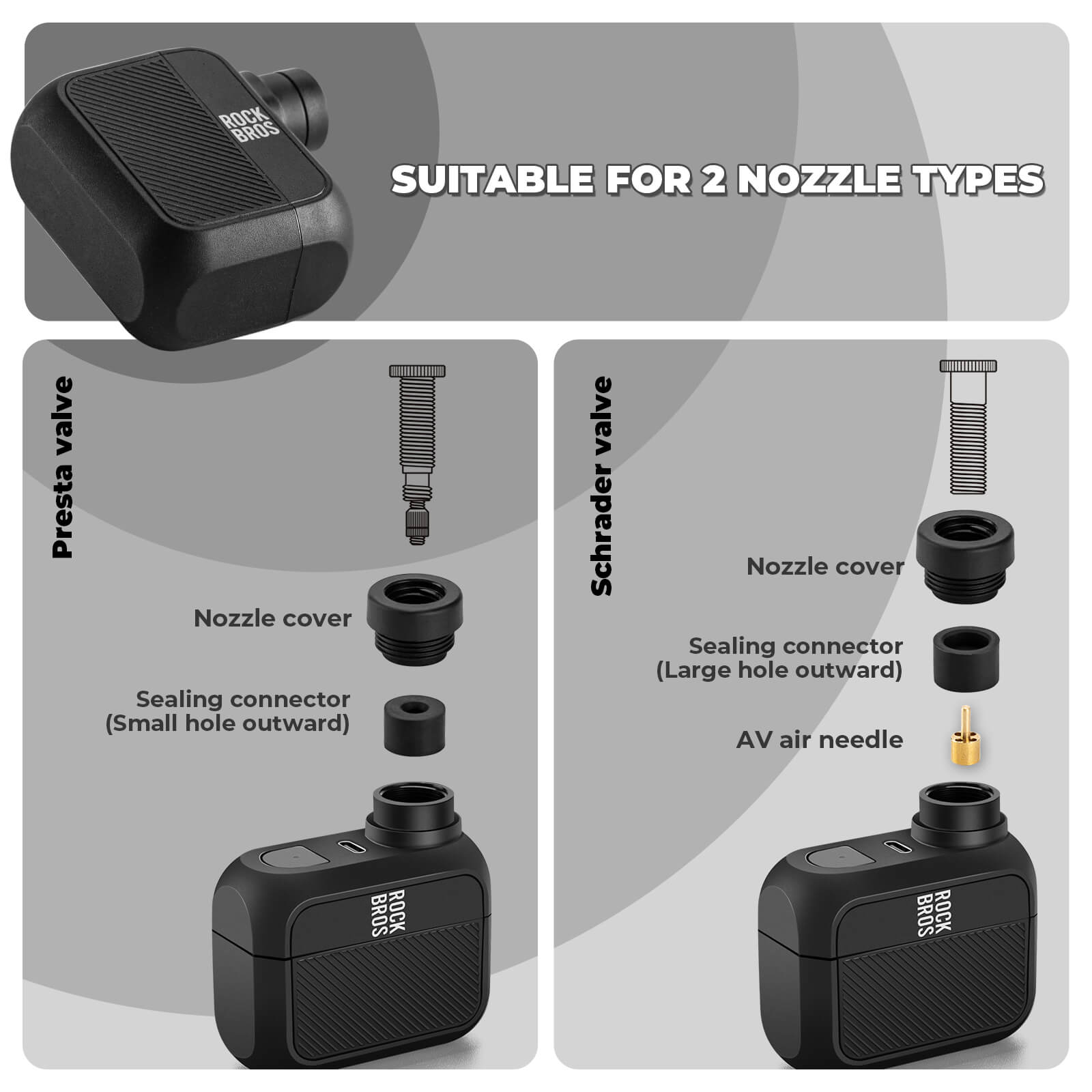 - Universal Valve Compatibility : Features a quick-change valve design that works with both Presta and Schrader valves. Easily switch between the two for efficient inflation without valve compatibility issues.