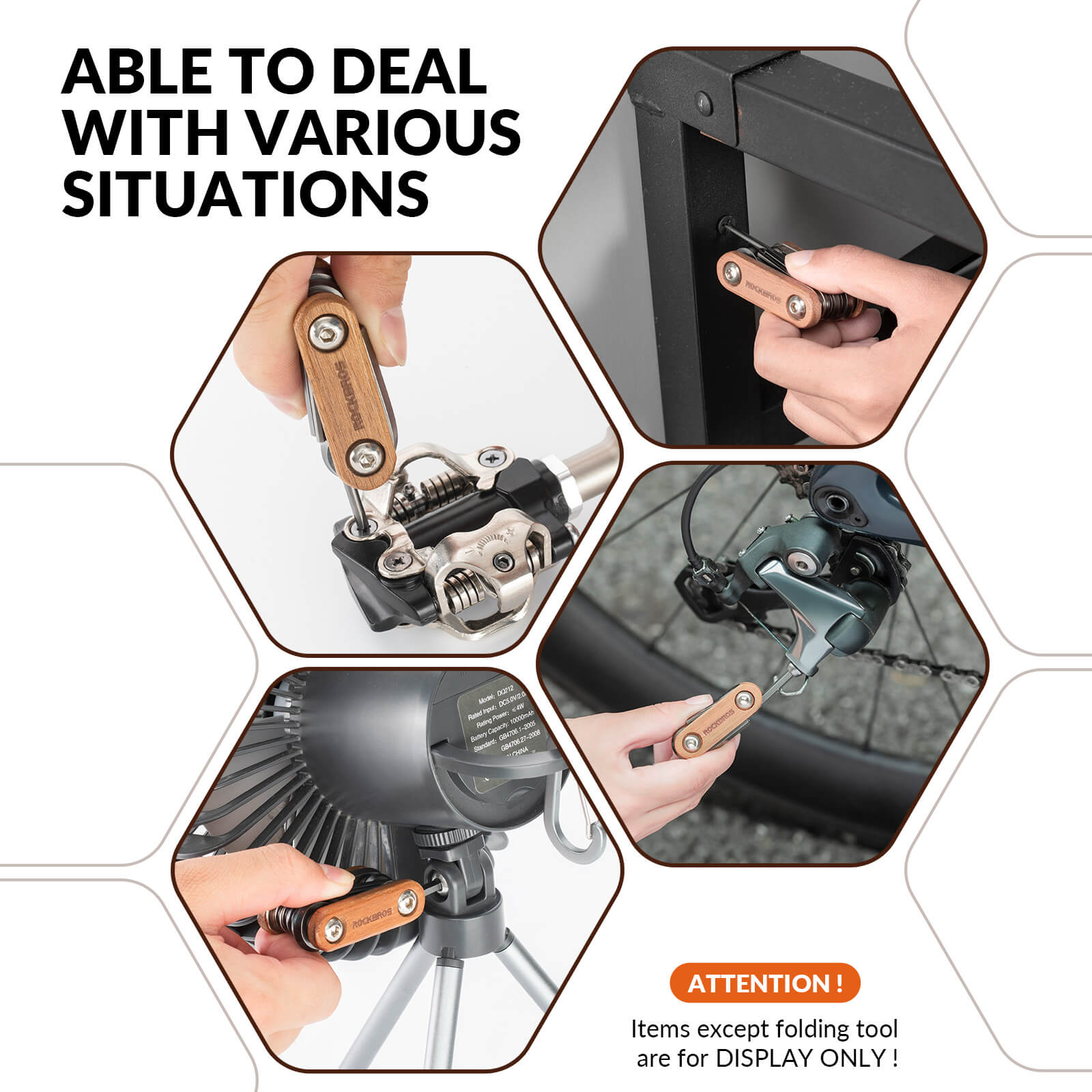 ROCKBROS Foldable Titanium Bike Multi Tool with Wooden Handle